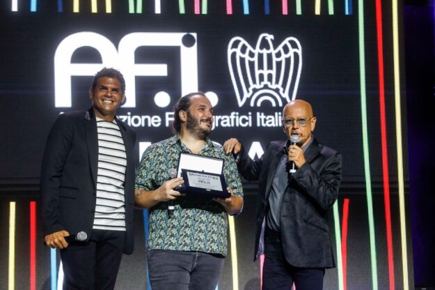 Il presidente A.F.I. Sergio Cerruti, insieme ad Enrico Ruggeri sul palco di Musicultura 2020, consegna il Premio A.F.I. a Blindur. Borsa di studio dedicata alla valorizzazione della carriera dell’Artista!